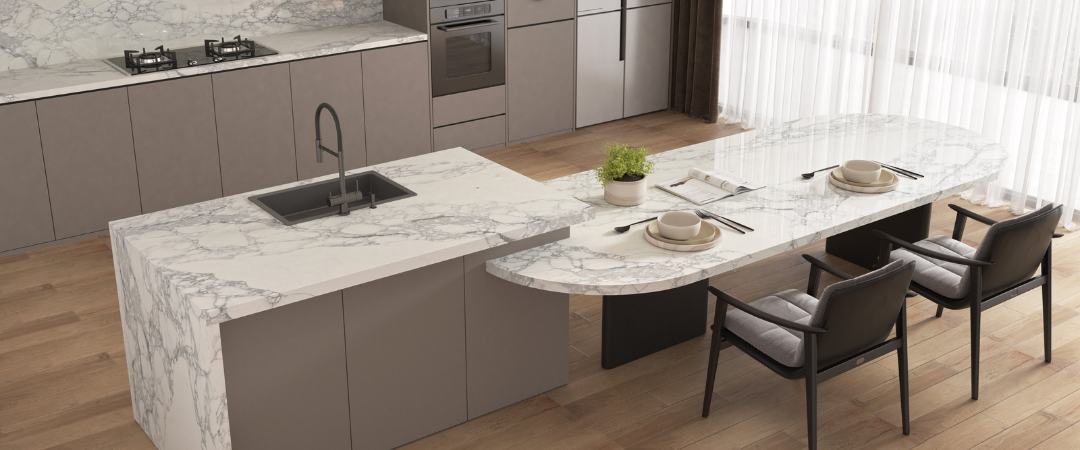 - Waterfall Islands: Marble flows to the floor like a runway—minimal seams, maximum drama.