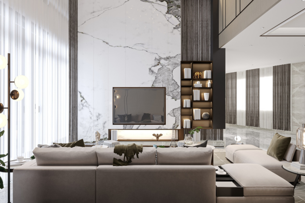 Polished, honed, or leathered finishes each bring a different vibe to your living room.